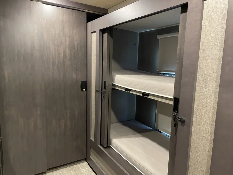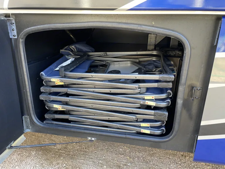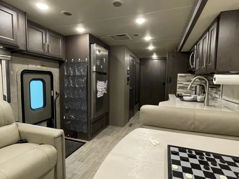 We are a family of 6 but 2 of our kids are already grown. We enjoy exploring the country in our RV and making tons of memories, and we try to make as many as possible before the twins are grown and off on their own adventures.Loaded with all you would need (Just bring your own food and clothes and your off in the Merry-Mar. While it is ready for a family of four with the bunk beds, there is room for two more to sleep 6 comfortably with the dinette bed conversion and the motorized queen bunk above the cockpit. This motorcoach does not require a special license to drive. And since it is a luxury class A, the journey to your destination is just as comfy and fun as the destination.This family adventure maker has massive basement storage and is filled with all the items any family would want on a trip to anywhere, and still, plenty of room for your own gear. The outdoor kitchen includes a fridge and sink plus cabinet storage, which comes in really handy when spending time at the campsite.