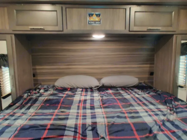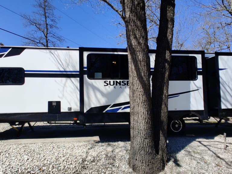 Enjoy camping with the "All Inclusive" features built in every Super Lite: Tri-Fold Sofas, Glass Top Range, Oversized memory foam King Bed, 60" x 80" Residential Bed, Solid Surface Kitchen Countertops, LED Interior Lights, Extreme Weather Package, Radius Rafter and a Fiberglass Front Cap. 2 TV (main room and master bedroom). Outdoor kitchen with grill, mini fridge, and sink.10% discount for Military, Law Enforcement, FireFighters, EMS, Doctors and Nurses.