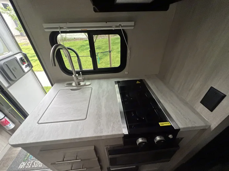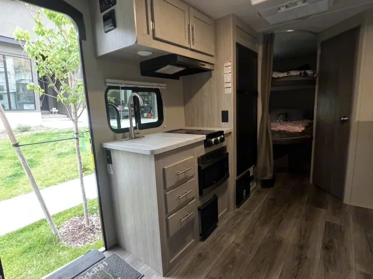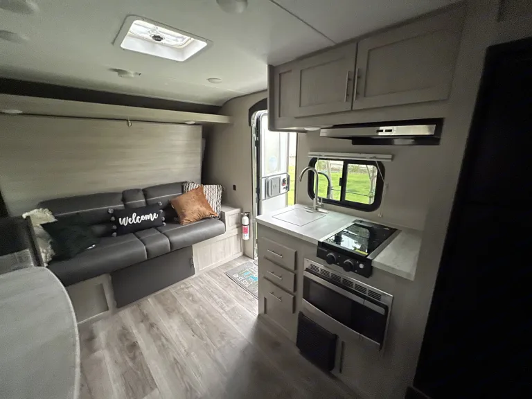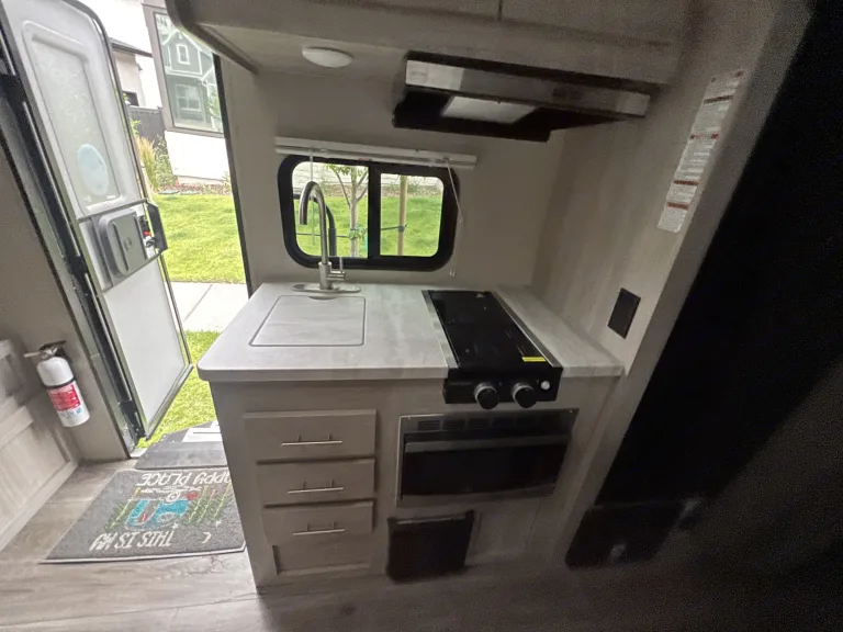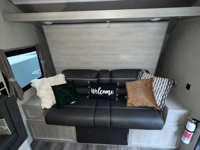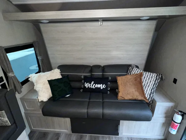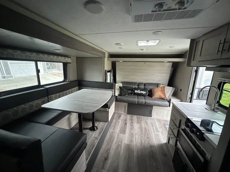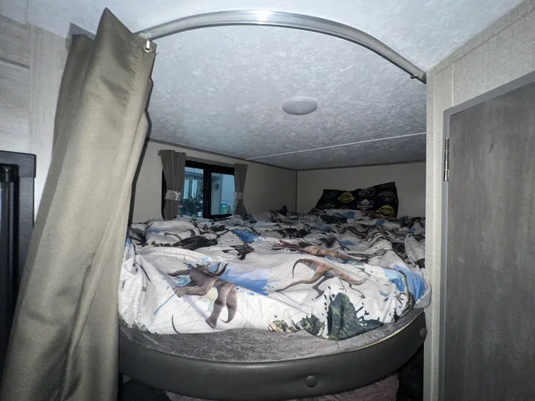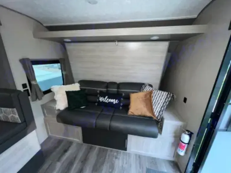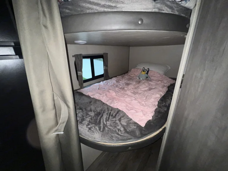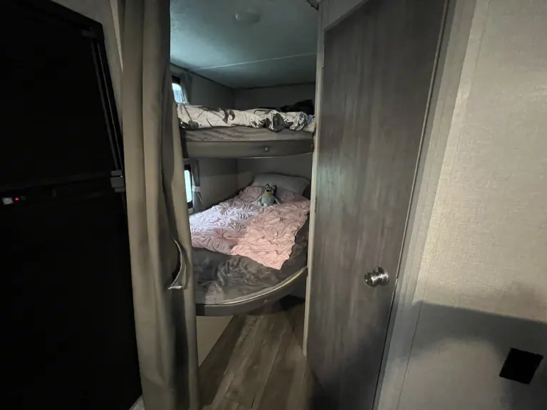 This RV has the perfect setup. The queen-size Murphy bed gives you plenty of room to sleep during the night and folds up to a super comfy couch to give you extra space during the day. Double bunks in the back make this camper ultra convenient for larger families and the slide-out table folds down into another large bed big enough for an additional 2 people. Inside you’ll find a microwave and kitchen cooktop and fridge with enough storage for extra long getaways. Outside the camper, you have access to another grill that hooks up to the gas and comes with extra cabinet space and a mini fridge for outdoor entertainment. The awning comes with lights that you can set to just about any color for any occasion, and the Bluetooth outdoor/indoor sound system is great for staying entertained. ThanksWhat's includedTwo camping chairs, fresh Linens, cookware, silverware, 4 sets of plates, cups, etc. RecommendationsShe's a brand new trailer, only taken her out twice so far. Both experiences were great! We went up Spanish fork canyon and to California. Other things to notePets Welcome!!! Has a dog hook up