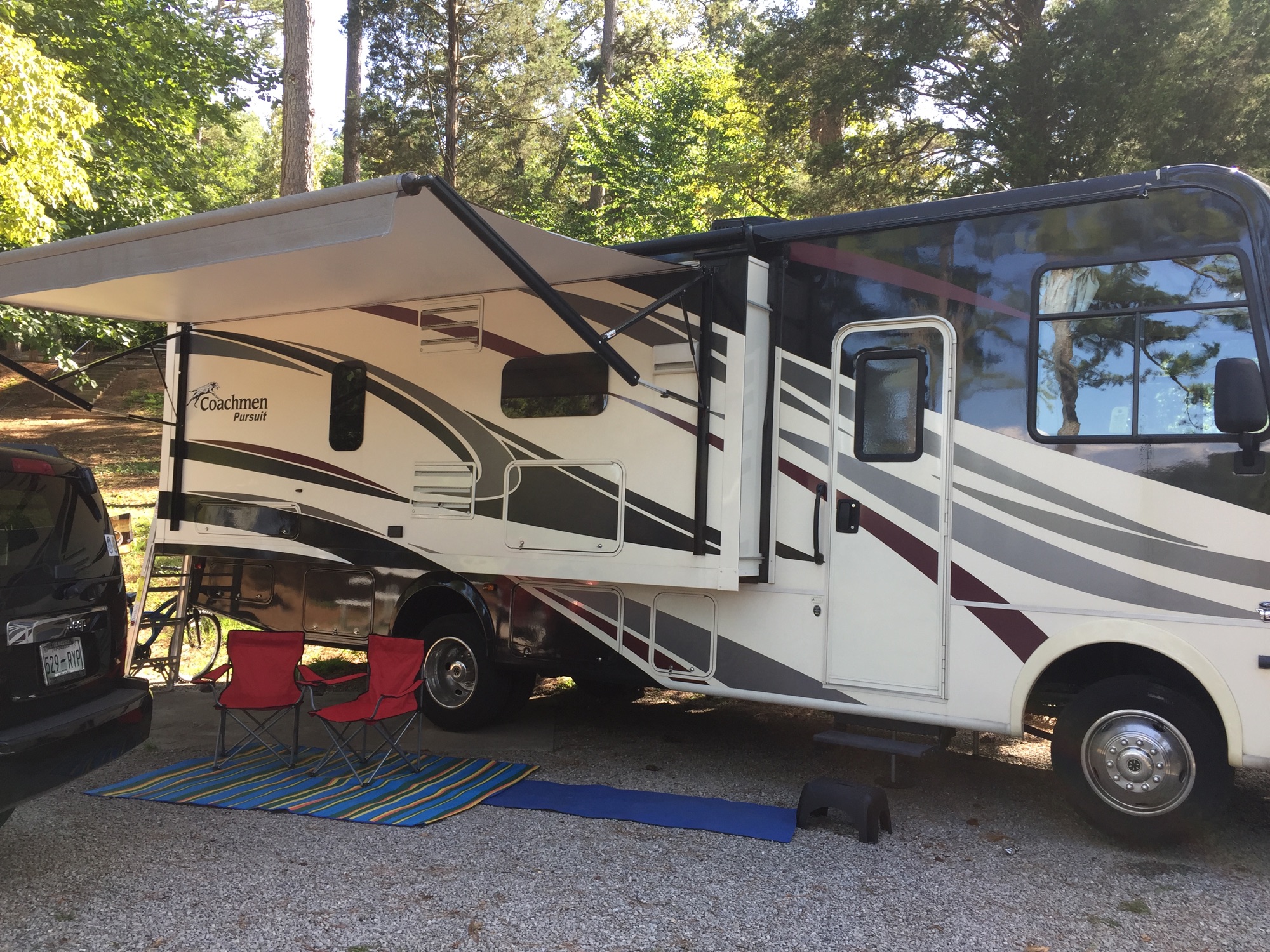 Like new 2017 Coachman with only 12 miles, with king bed in rear with lots storage throughout, with full size electric bed above driver's seats. Kitchen has removable table for third bed. Has microwave, 3 burner propane stove, oven, double sink, pantry, bathroom fan and plenty of storage everywhere. Three TVs, The V10 Ford engine has plenty of power!!What's includedFresh linens, towels, blankets, pots and pans, silverware, plastic & paper plates, napkins and glasses, RV toilet paper etc,