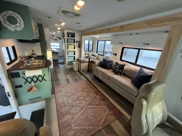 This 2007 Coachman Mirada is fully renovated. Tons of storage - inside and out. A beautiful basil green kitchen, white interor and new sofa make for a comfortable ride. Enjoy a beautiful view out the huge front window as you travel the moutains, beaches, or local state parks.This rig includes electric stabilizers, gas generator - connected to the same gas tank, pass through storage, laundry hamper, large pantry, 2 way refrigerator- propane and electric, Roku tv positioned in front of the sofa, and electric fireplace, new backup camera, and a new Bluetooth radio.There is a very comfortable queen bed in the back that is usable as you drive. It can sleep up to four people with the sleep sofa (queen).Manual includedWhat's included4 camp chairs included, cookware, plates, cups, utensils, RV toliet paper, coffee pot, sewer hose, water hose.Guest can provide their own bedding and towels or use ones provided in our add-ons.