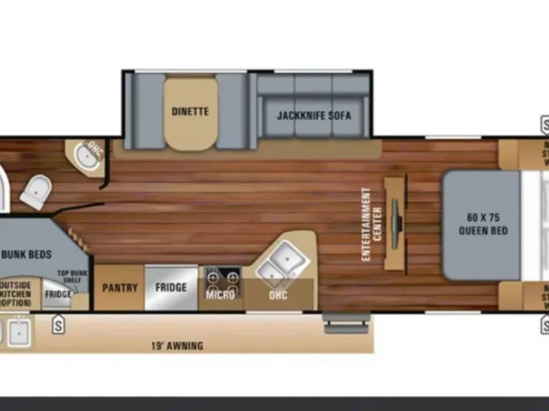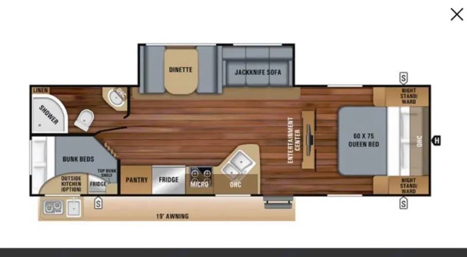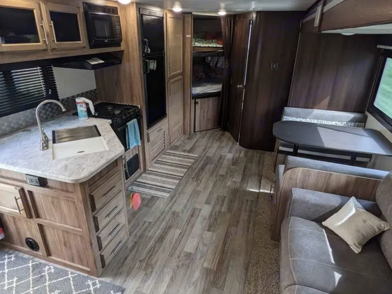 Branched Oak RV loves the great outdoors and this camper is perfect for those families that like to get away from the busy city life to spend some quality time together. This Quad bunkhouse model has one large slide. Outside kitchen makes hanging under the awning fun! Plus the Smart LED TV is great for movie time if you have a rain delay in your family fun time. This unit is 1/2 Ton towable, and for your safety we provide a equalizer antisway hitch. Sleeps 10. If this unit does not meet your needs then check our website at branchedoakrv