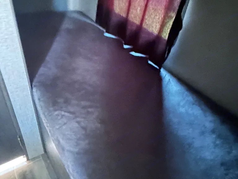 A dark-covered narrow bed or bunk with a window and a deep red curtain, providing compact sleeping in an RV rental.. Jayco Jay Flight SLX 2021