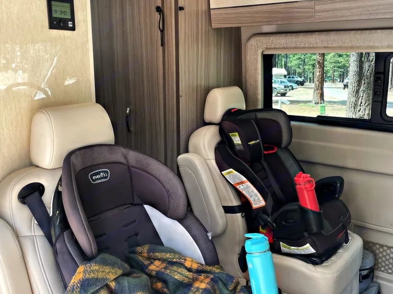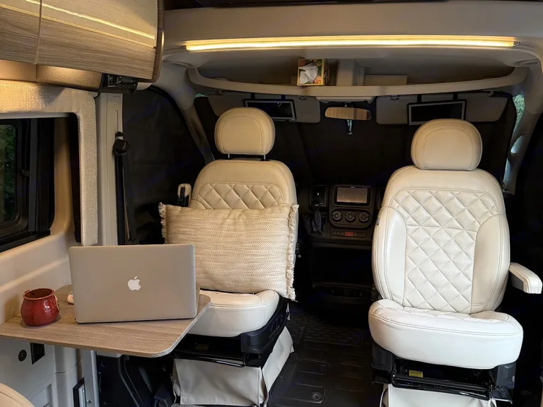 4 captain’s chairs (great for kids, teens, or friends) – front seats swivel to create a dining/game space.