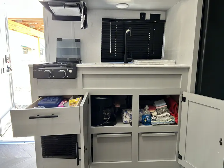 * 11 CU FT Frost Free Double Door 12-Volt RefrigeratorWhat's includedPots and pans, towels, cutlery, linens, coffee maker, bluetooth speaker, roku TV and more!RecommendationsGreat boondocking rig but you'll need a generator. Amazing at a full service RV park with shore power.Other things to noteIf you're looking for a travel trailer to rent, Pearly's been true! I also offer, scenic, private primitive camping on the Buffalo river and Tennessee River with, or without an RV rental! Pretty great, right?! Drop me a message if you have any questions or want to know more. Hope to see you soon!