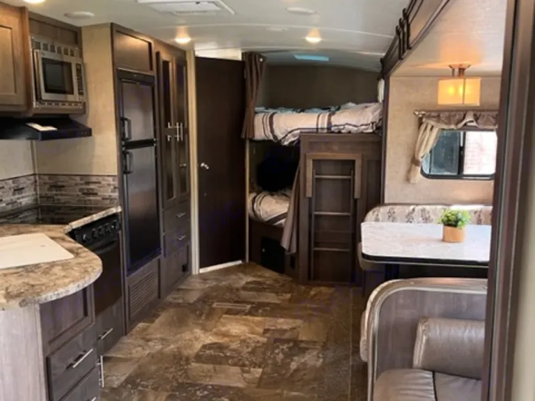 We recently purchased this trailer and want others to experience all camping has to offer with this clean, comfortable trailer. Pet friendly, comes with an option to be fully furnished and ready to go for your adventure. We will deliver. The separate door outside to bathroom makes keeping it clean a breeze.What's includedPower awning, dishes, 4 camp chairs, 1 outdoor table are included, delivery only. Pet friendly. If you would like linens please select the add on and BBQ available for a fee. Recommendations$ is in USD, select CAD