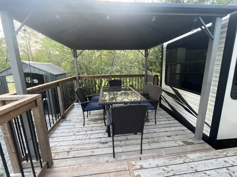 Luxury 2021 Hampton Residence 42 Ft park model! Glamping at its best! Nestled in Silver Birches Resort on Manitoulin Island. Quiet grounds. Large treed lot. Spacious grass area for family activities. Water views with access to your own beach front! Fire pit. Comfortable outdoor furniture to gather and relax. A perfect space for a large family to connect in nature! Pristine condition. What's includedOur trailer is a park model. It sits seasonally on our lot and is not meant for hauling. It has most of the amenities from home, except wifi. Families can come and relax and be in a comfortable, safe space to recharge. You will need to bring bedding and towels. All pots, pan, cutlery, etc included.The trailer comes with all cookware, appliances and BBQ. We supply mattress covers only. You must bring your own bedding including pillows. You are welcome to any condiments and supplies in the pantry. You can drink from the tap but we recommend you bring water to drink and cook with.We have outdoor lounge and dinning furniture. You may want to bring extra chairs for the beach.We are on the water, however, beach access (roughly 100ft from the trailer - see pictures). No hauling the kids and gear to the beach! The water is clear, shallow and warm with river rock bottom so it is safe for young kids. Please bring rock shoes.Please bring your own water equipment and toys.We do not have docking access. We do not recommend bringing a boat or seadoo. Canoes, kayaks are fine. RecommendationsThere are many fun activities you can do on the island. Hiking, horseback riding, golfing, trails, pow wows, festivals, sandy beaches! Check out Manitoulin Tourism for a full list. Other things to noteSome basic house rules: ⠀⠀⠀⠀⠀⠀⠀⠀⠀⠀⠀⠀No smoking inside the trailer please!