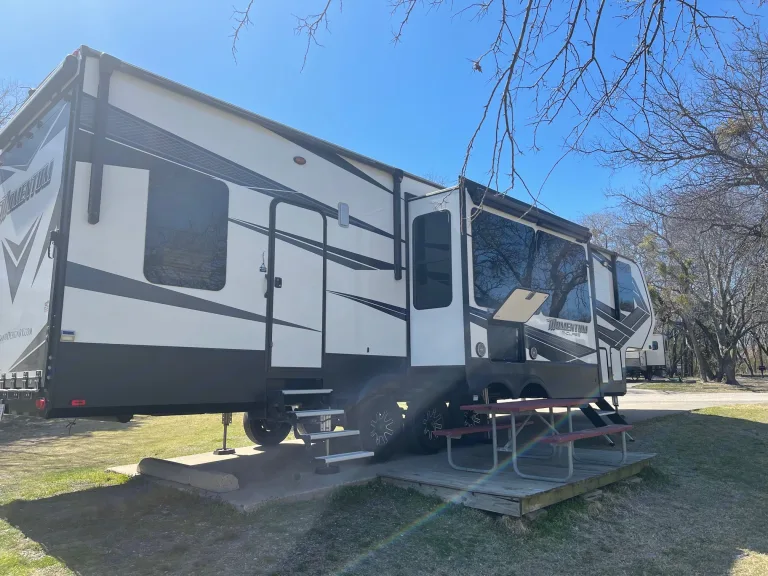 Hi! We are The Brown's! Thank you for taking a look at our Beautiful trailer! We love to travel but also love the comfort of home, so we have created that within this rig. Very spacious for comfort and entertaining family and friends. The master suite has a king-sized bed with two closets and dresser drawers. The kitchen has a residential size refrigerator, 3-burner stove, convection microwave and plenty of pantry space. Living area has a L shaped sofa cozied around fireplace along with a separate 2seat sofa, all which recline with vibrating massage and heat. There is a 4-seat dining table as well. The "toy hauler" section has 2 queen sized bunk beds and when not being used can be lifted and made into an additional dining/hang out area. There are 3 indoor TV's along with outdoor TV and sound system. LED lighting indoor/outdoor for a beautiful ambiance. Off the back of toy hauler there is a fold down fenced in patio perfect for enjoying your morning coffee, evening beverage or to coral small children. We hope you and your family enjoy it as much as we do! What's includedRV comes equipped with all bed linens, pillows, bathroom/kitchen towels, cooking utensils, silverware, pots/pans, coffee pot, toaster, vacuum, trash bags, cleaning supplies, outdoor griddle, outdoor table, outdoor rug, 4 camping chairs, first aid kit, board games and many other little extras.Other things to note*Pet friendly depending on size