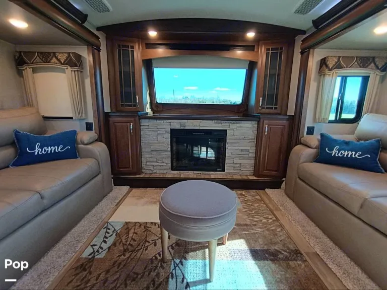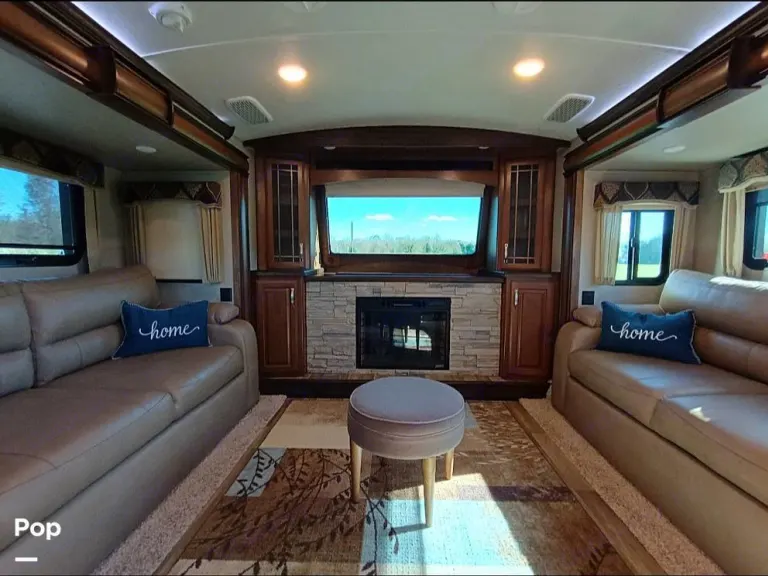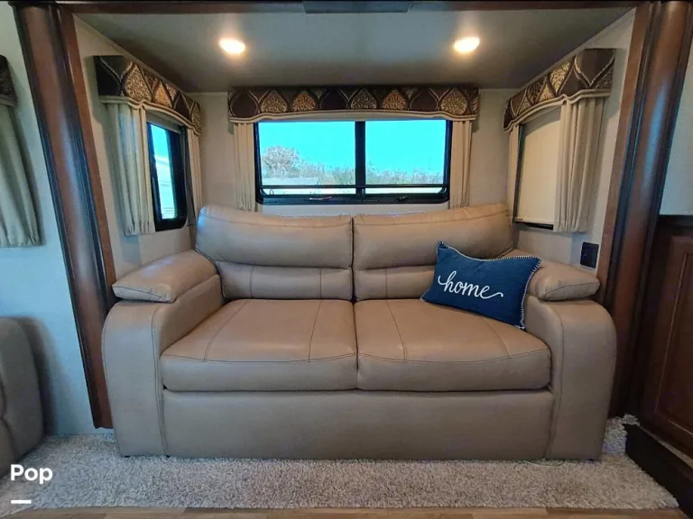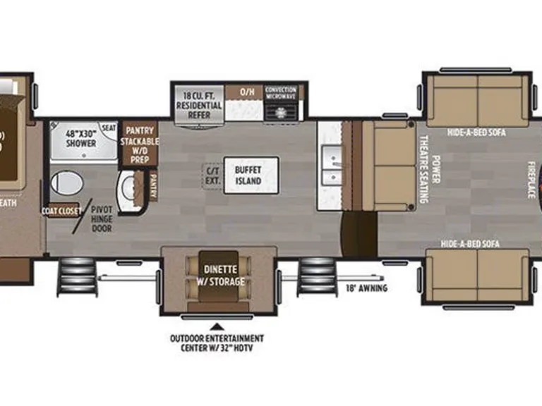 Two hide-a-bed sofas in the front living area for additional sleeping options.Front Living Room:Spacious, elevated living area with a residential feel.