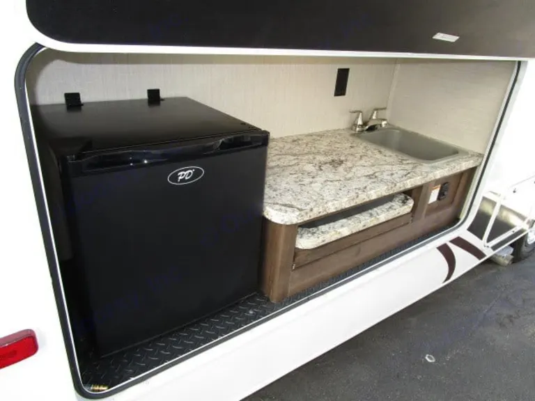 Brand new RV with suspension modifications for a smooth and comfortable drive. No white knuckles here. Sleeps 8, 50 inch TV, Out door kitchen with refrigerator, and car dolly to tow extra vehicle available (additional charge). Plus easy auto leveling jacks.Comes with everything you going to need to have a great time. BBQ grille, camping chairs, tables, pots, pans, silverware, DVD player with selections of movies, and board games.Pick UP: 8:00am(Flexible)