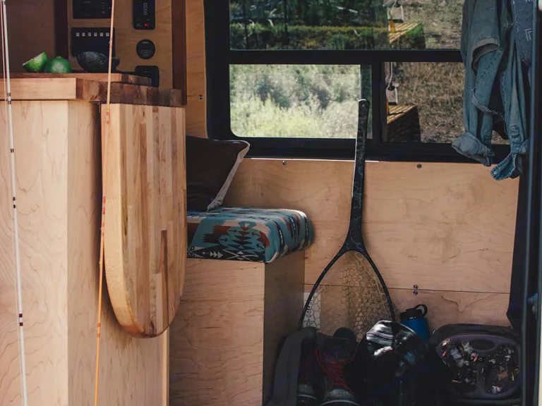 Gaucho's custom-built features include a galley kitchen, RV queen bed, on-demand hot water, fridge/freezer combo, two-burner propane stovetop, dimmable interior lights and fan, solar power, heating, insulated window coverings, and an outdoor shower setup. Guests can add a tent setup to their reservation for additional sleeping space. What's includedStanley cookware, chef knives, spatula, tongs, spoons; Serveware: plates, bowls, cups, cutlery, coffee cups and press, cutting boards, Dish Towels, Soap and Sponge, Can and Wine Opener, Trash Bags, Sheets and Quilt, Rumpl Puffy Blanket, 4 Pillows, 2 Sets of Towels, 2 Folding Camp Chairs, Folding Table, Grilling Utensils, Lantern, Hand Saw, Shovel, Axe, Fire pan, Foldaway Camp Toilet w/ Bags, 2 Hammocks w/ Straps, Turtlebox Portrable Audio Speaker, Binoculars