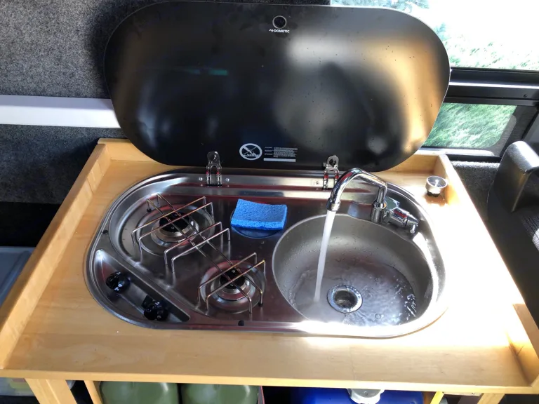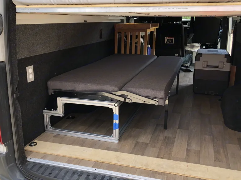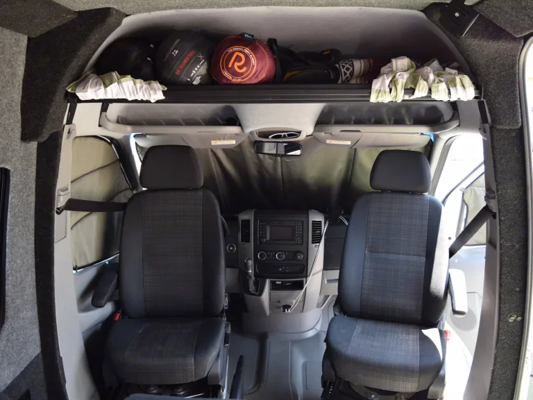 - Slide Out Bike Tray. Fits 2 Mountain Bikes, with thru axle fork mounts.Teddy is a 170 wheelbase, 2.1L, 7 speed automatic sprinter. He is a joy to drive as the little 4 cylinder diesel coupled to the 7 speed automatic really moves this van quite well. This combo should give you low to mid 20's for MPG! Even at elevation up the mountain passes this thing moves quite well. Teddy is also very easy to drive. If you don't have any experience driving big vehicles, no problem. These Sprinters are so easy to drive, after a few miles you will forget how big this machine really is!Sleeps 4