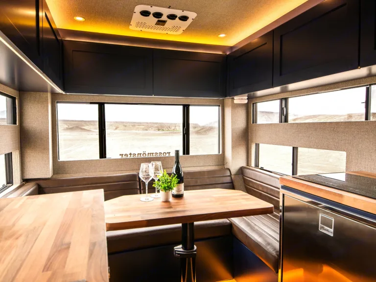 Built on the robust RAM 5500 chassis, the Baja Plus comfortably seats four in the cab and offers a thoughtfully designed living space. It features a queen-size bed over the cab with a custom memory foam mattress, a leather dinette that converts into a bed accommodating two adults, and a full galley equipped with a fridge/freezer combo, induction cooktop, and residential-sized sink.The 40-gallon fresh water tank supplies an interior sink, an interior shower, and an exterior shower. A state-of-the-art AquaHot hydronic system provides both heat and hot water, while the upgraded lithium battery bank, solar array, and inverter keep devices powered and the adventure going.Above all, the Baja Plus embodies the perfect blend of rugged capability and refined design, proving that small spaces can deliver big experiences. If you have any questions or would like to learn more, don’t hesitate to reach out!