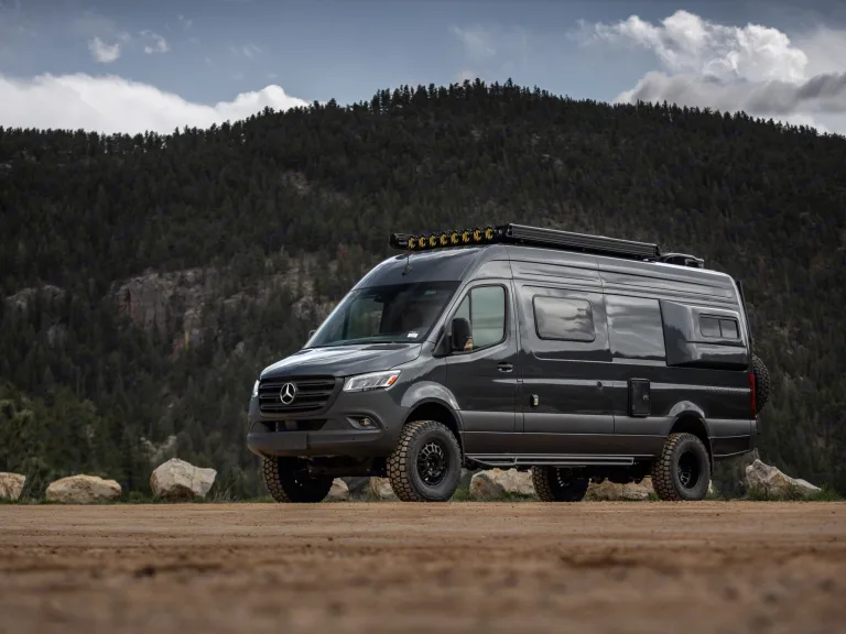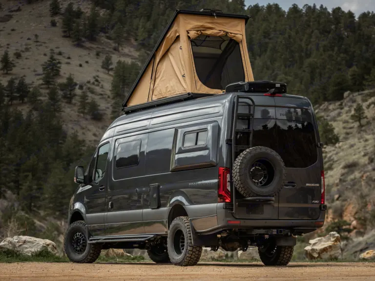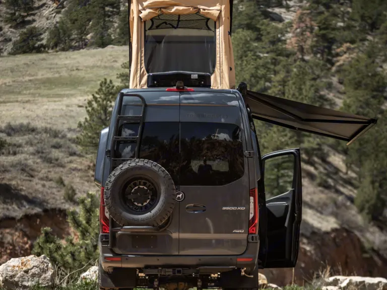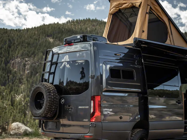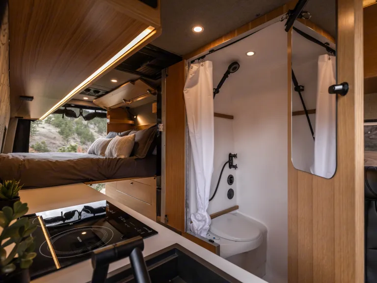Inside, the Skye features comfortable seating for four, a convertible bed system that sleeps two (with Roof Top tent for additional sleepers), and a full galley complete with a fridge/freezer combo, induction cooktop, and deep residential-style sink. A 40 gallon fresh water tank feeds both interior and exterior showers, and the system is powered by an efficient lithium battery bank, solar array, inverter, and shore power compatibility. Heating is handled by a diesel heater with in floor heating, with air conditioning available for warmer climates.Above all, the Skye represents our commitment to elevated design and craftsmanship, proving that off-grid adventure can come with the comfort and aesthetic of home. Please reach out with any questions!ALL Rentals Must Remain ON Paved Roads AND ARE Strictly Prohibited From OFF-Road USE.
