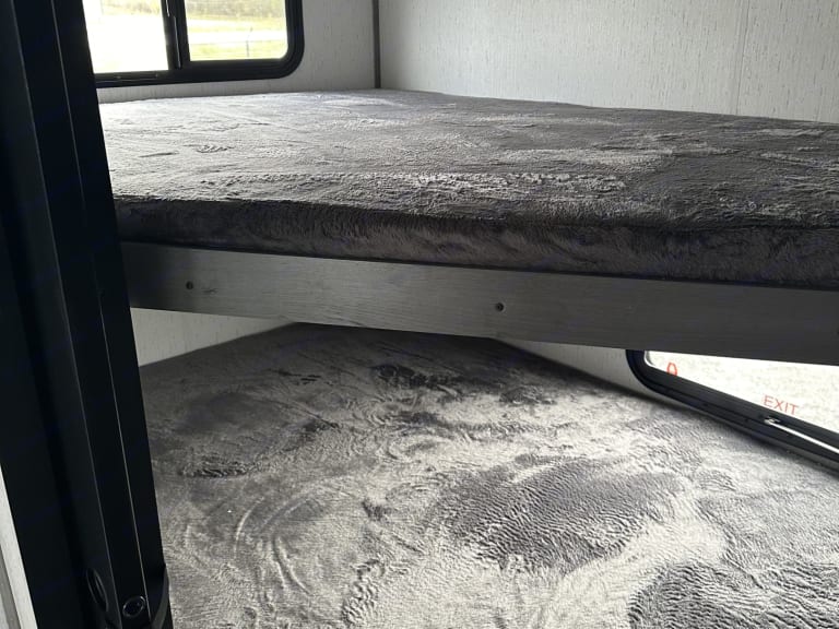 This is a brand new camper, just pulled off the dealership in May. This camper is ready for your families luxurious camping trip. We offer delivery with setup and hookup if available. On the outside, there is an outdoor fridge for cold refreshments and an outdoor griddle for your fancy picnic, a big awning with LEDs to offer plenty of shade, rain protection, and outdoor light on the late campfire nights. On the inside, we offer a spacious area for activities that includes a fold out sofa, u shaped dinette, electric fireplace and a 40 inch Roku tv. The kitchen is equipped to make some great camping meals along with desert for your family. It includes a stainless steel sink, stove, microwave, oven, huge pantry, and residential size fridge. In the bunkhouse, we have a nice little closet and 2 large bunk beds. Up front there is a roomy bathroom that you can take care of business in comfort unlike most campers. It includes a shower, toilet, sink and mirror. The master bedroom has individual closets and night stands, and has a large queen size mattress prepared for you and your loved one. Some stuff that isn't so obvious is that this camper comes with tons of storage to stay clean and organized, We have included a couple board games for the rainy days, plastic dishes and silverware for indoor or outdoor use, The smart tv is ready for you to turn on your favorite Netflix show or youtube channel. What's includedThis rental includes delivery with set up, stabilizing, and preparation for a relaxing camping adventure. During your stay, we include 4x lawn chairs, cookware, dishes and utensils, boardgames, bed sheets, 9'x12' patio mat, and a 40" Roku Tv. At the end of your vacation, we will pack up and break down the camper to prepare it for your next stay.RecommendationsI highly recommend camping in west Michigan, this is a beautiful place with lots of great scenery and activities to do. I will list a few of my families favorite areas.