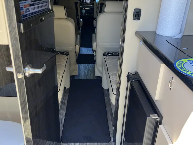 What's includedCaptain's Chairs and Sofas for 10 passengers. Smart TVs with access to all of your preferred streaming apps. Bluetooth headphones for rear TV. Kitchenette with refrigerator, microwave and sink. Bathroom.