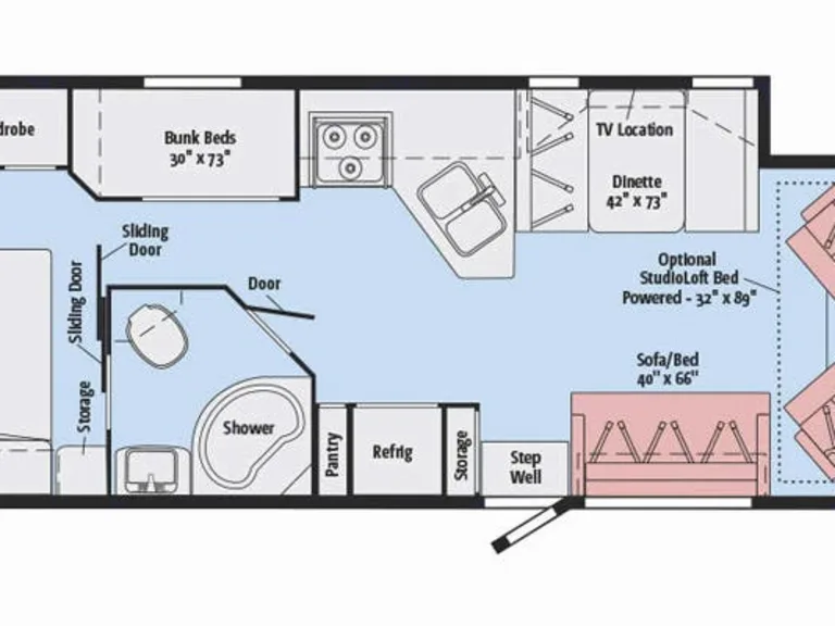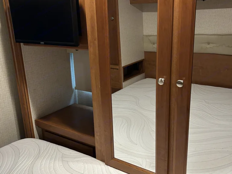 Don’t let this dreamy RV lure you into staying inside for your whole vacation! With its fully furnished kitchen, entertainment system, full bathroom with a large shower, air conditioning, and propane furnace, our 2017 Sunstar is guaranteed to provide your most luxurious excursions yet. An open floor plan and sleeping for up to nine ensures comfort for everybody, as well as tons of storage to house all of your accessories for adventure. Simply rent and go!This unit has: