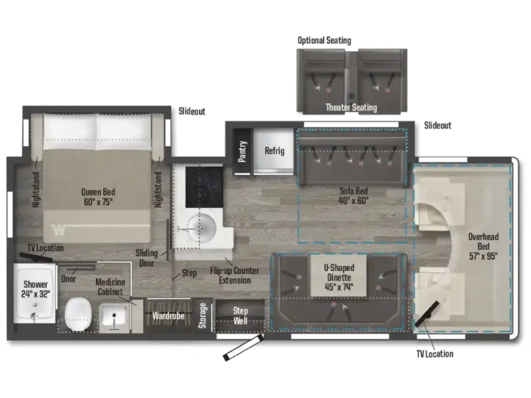 Brand NEW AND Ready TO Have Some FUN!!! This gorgeous Winnebago Spirit is not too big and not too small, perfect for whatever adventures you have in mind. WIth sleeping for up to eight, plenty of storage and a full kitchen, all you need for a great vacation is your food and clothes and a sense of adventure!