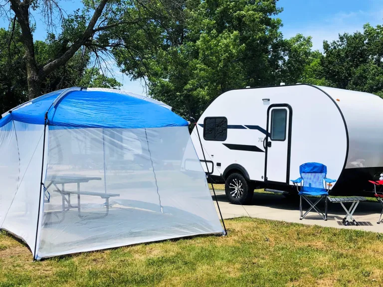 The Bushwacker is small enough to pulled by most any vehicle with a receiver hitch. It is stocked with most everything one would need to go on an adventure. With bunk beds and a U-shaped dinette that will fold down into a queen size sleeping area The Bushwacker can accommodate up to 4 people.Don't want to pull the camper? We can handle that if you would like.With the included screened in gazebo you can picnic in the shade without flies buzzing around your food!Do you like your own bathroom? Well don't worry, this little camper has you covered there as well including a hot water heater for washing.Do you like climate control while you are sleeping? You can choose depending on your needs because this unit has heat and A/C.The entire area under the bottom bunk is storage and there is additional storage in the rear under the dinette seating.The Bushwacker even comes with a back-up camera, universal fit tow mirrors, an anti-sway hitch, 2” ball hitch, and a screened gazebo that you can put up over the picnic table for some shade. It doesn't matter if you are completely new to camping or seasoned. We will take care of you, and anybody can go bushwacking now or glamp with electricity and water!