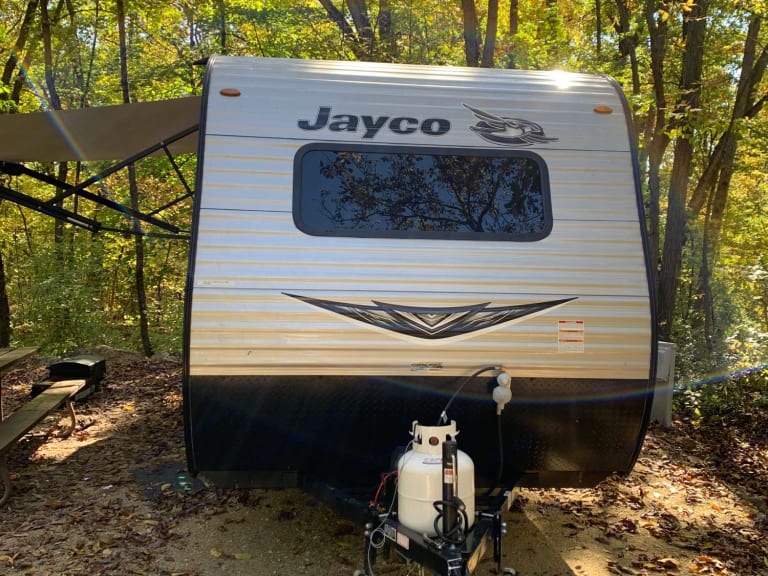 This is a 2021 Jayco Jay Flight. 21.5 foot travel trailer, sleeps 5 people comfortably.Camper is equipped with twin bunk beds, queen bed, and dinette that converts to a single bed. Bathroom with toilet and tub/shower. Kitchen features a small refrigerator, microwave, 2 burner stove, and sink.*please note that camper will be winterized from November - March, additional steps must be taken to de-winterize and re-winterize when going to warmer weather places during this time. If not going to above freezing temperatures camper must stay winterized and water usage will not be allowed*What's includedIncluded amenities are: