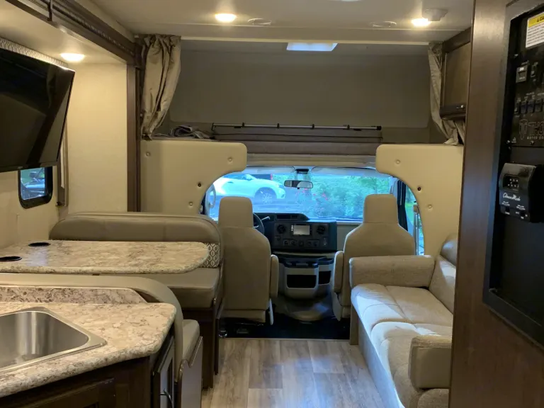 Great RV for families and their pets . Very clean , sleep up to 8 . All hoses and cords on board for connection when available . 29 feet , easy to drive and includes backup camera . 2 slides out provides significant increase in floor plan size . Rental includes an extensive walk through to cover all the included amenities along with instructions on the full operation of the coach .Other things to notewe are pet-friendly however , pets must be crated while inside the rig . There is additional daily fee for pets . There is additional fee for pets to sanitize and purify the air and a higher security deposit . absolutely no smoking inside the rig . Any indication of violations result in loss of security deposit .
