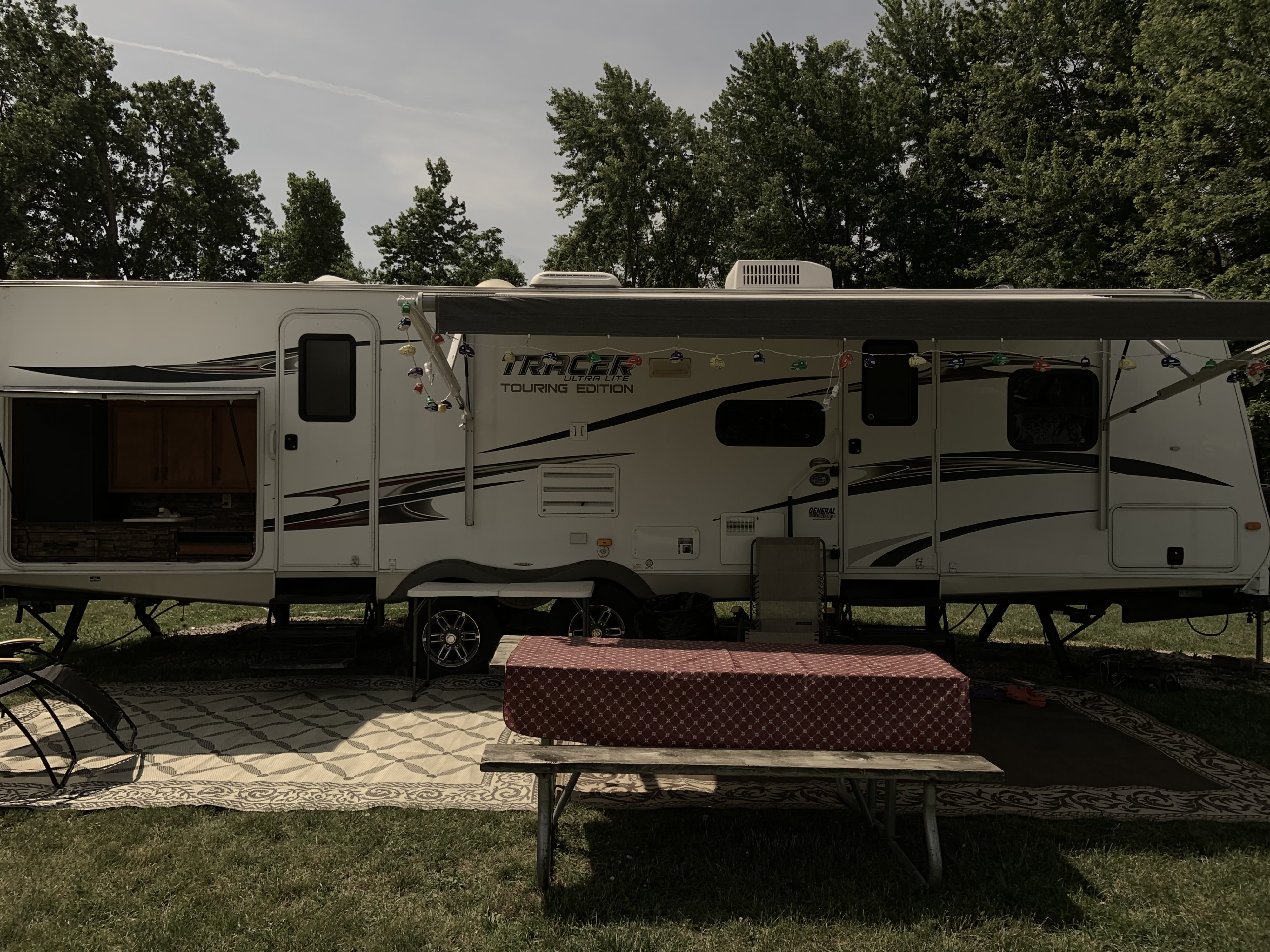 Enjoy a wonderful weekend getaway with the family in this cozy travel trailer. All stocked and ready to go. Just bring your clothes and food and it’s ready. Complete with an outdoor kitchen so you can continue your conversations while cooking. If your ready for a fabulous vacation this is the trailer for you.