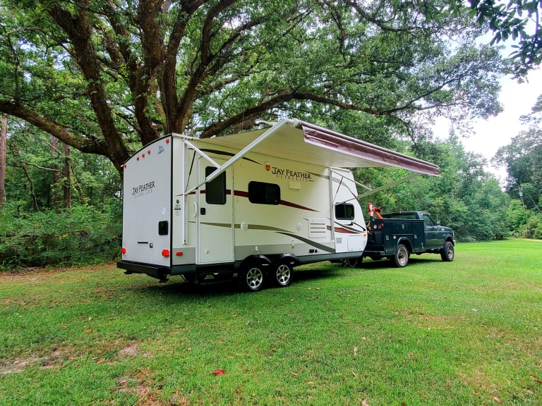 My family and love to go mud riding/trail riding with our ATV's. While camping at various ATV parks, many friends and family had the same issue. They could not pull their travel trailer and ATV's, they also did not want to pay for a hotel and leave the park with their ATV's at closing time during our trips. So we started offering to rent ours with delivery and set up so they can pull their ATV"s and stay close to the fun.