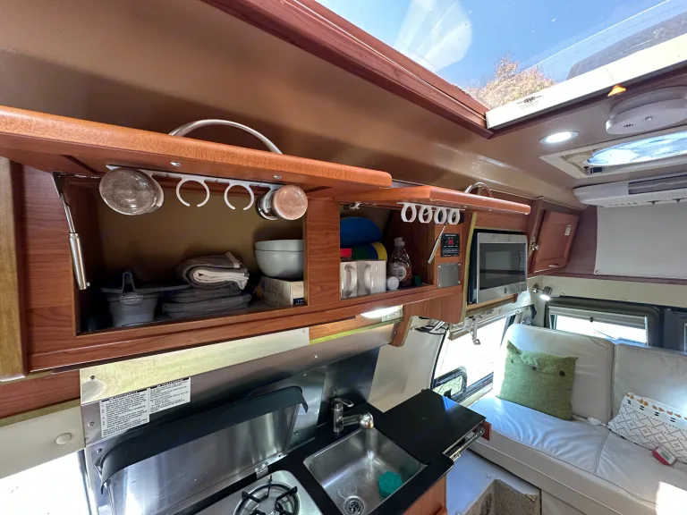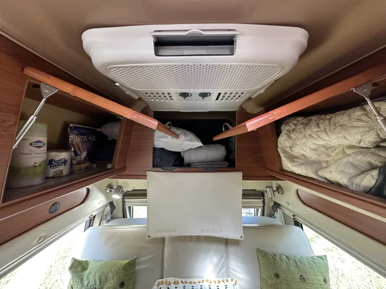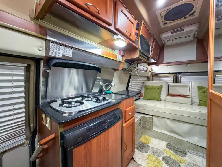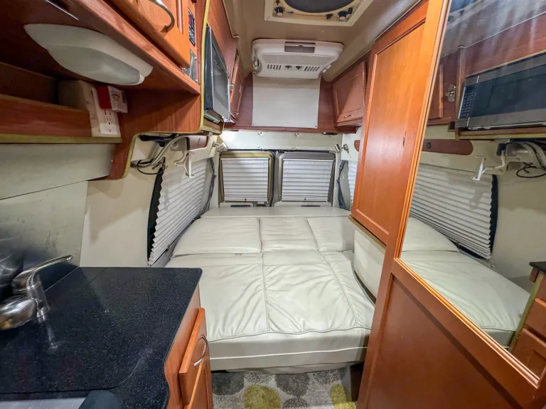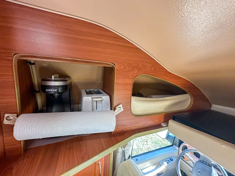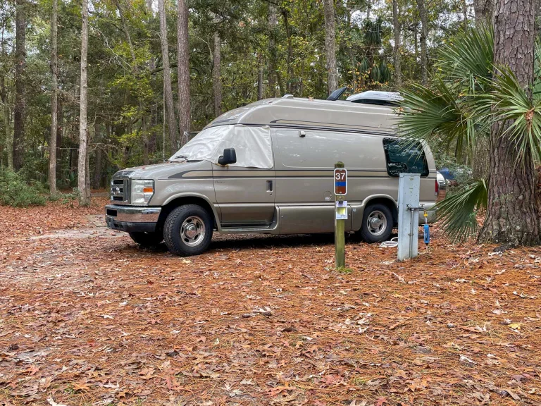 With impressive low mileage (under 30k) and meticulous maintenance, this camper is a reliable companion on the road. Its compact size is a blessing in disguise, making it a breeze to maneuver through quaint towns and ascend mountain trails to your serene campsite.Sleep: Imagine drifting off to dreamland in a cozy full-size bed, perfect for lovebirds or solo wanderers. A mini closet to hang your adventure outfits, drawers, and overhead space to keep organized. Plus, it has an upgraded rooftop AC or you could enjoy the night breeze through open windows and a ceiling fan, comfort is a constant. If Jack Frost comes knocking a handy space heater will keep you toasty.On-the-Go Kitchen: Whip up delicious meals with ease! Our camper's kitchen is a delight, equipped with a gas stove, fridge, sink, microwave, and even a single-cup Keurig for your morning caffeine fix. Add a toaster and a full set of utensils, and you're all set for a feast on wheels. Or, just drive into a local greasy spoon since it is so easy!Privacy: Cover up the windows and remember you have a full indoor bathroom that features a toilet and shower for your convenience (but we usually use the bathhouse at the campground).The updated stereo system supports Android Auto, CarPlay, and Bluetooth. Use the DVD player (parked mode only), or bring your tablet or streaming device for endless fun.The retractable awning is perfect for al fresco dining.Tech Savvy: Keep your gadgets juiced up with handy outlets featuring built-in USB plugs.Gas: Hassle-Free Fueling: Regular (87) gasoline powers both the vehicle and the onboard generator, simplifying your journey.Special Features Galore: Backup camera for safe reversing, leveling blocks, surge suppressors, electrical adapters, a labeled fresh water hose, and even latex gloves for the more adventurous tasks - we've got you covered.EZ-Pass is available for tolls, or bring your own and have fun!What's includedPots and pans, plates, cups, utensils, small folding table, toaster, single-cup Keurig coffee maker, matches, two camping chairs, sheets, pillows, pillowcases, blanket, and towels.RecommendationsFirst - have fun! Our camper is as easy to park at RV parks as it is to drive through small towns and even park in a normal parking space at a grocery store. We love the Georgia State Parks and highly recommend making reservations for your space well ahead of your planned trip. Other things to notePlease be respectful and responsible within our camper - it is well taken care of, and we insist on keeping it NO SMOKING and NO VAPING inside. Remember you will be in a much taller vehicle than normal - so watch for low trees and bridges! If you have any questions on how something works, we are just a text or call away. If you have doubts on how something works, contact us before trying to do something yourself. Always stay on paved or well-maintained roads and most of all, have fun!!