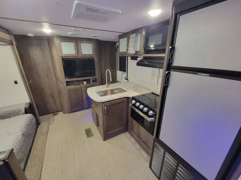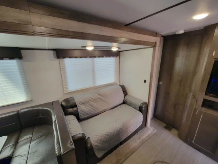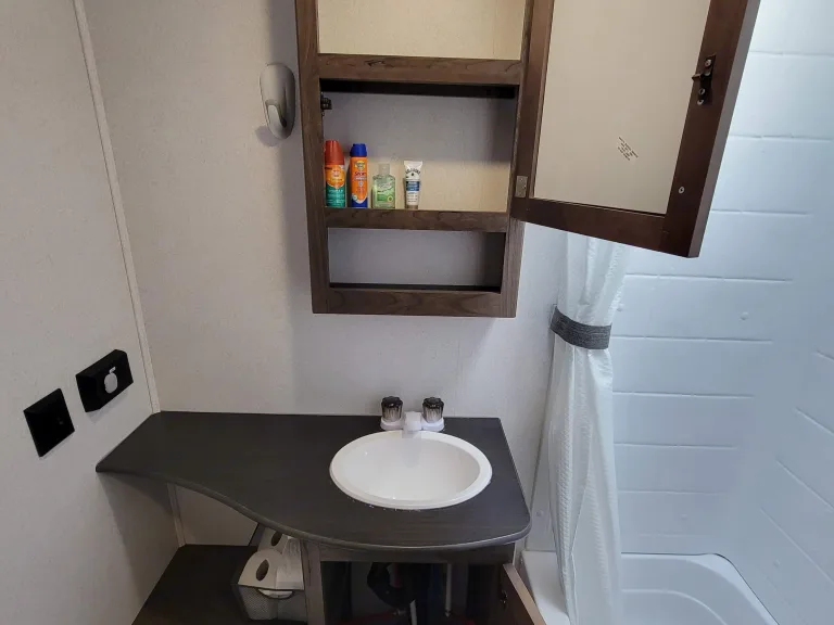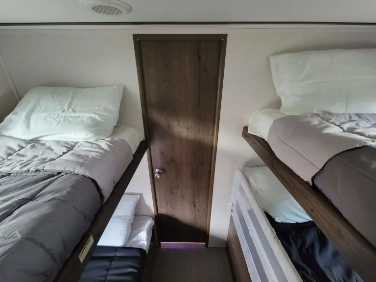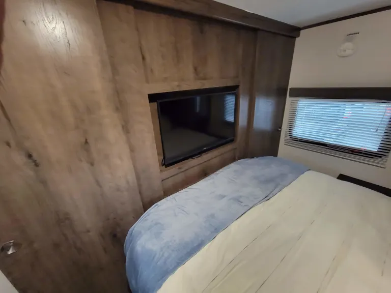This is a great camper for the whole family. It has a private queen room with Smart TV up front and 4 bed bunk room in the back. Sit out under the huge awning while you cook at your outdoor kitchen. The indoor kitchen offers a microwave, refrigerator and freezer, stove with over, and plenty of prep surfaces. One of the bottom bunks folds up so you can fit all of your gear through the extra-large bicycle door in the back.We include everything you need for a great time, and we have tried to think of any of the little items you may need but have forgotten. Our goal is to make your trip as smooth and enjoyable as possible.We have TV's and an indoor/outdoor stereo for entertainment if you choose. We also include some family games to make sure rainy days remain as memorable as sunny ones.Please feel free to reach out with any questions. What's includedWe will make sure you have a clean camper with fresh linens, and extra blankets for the extra beds. All of the jacks and levelers are powered, so you never have to worry about the manual labor of setting up camp. We also have a tote with some basic camping supplies to really help ensure a smooth adventure for you and your family. There are paper plates and cups along with a coffee maker, hot chocolate and some tea. Just a few things to make your trip a little better. RecommendationsThe Smokey Mountains and Cades Cove are just down the road. It has full hookups and well as Fresh Water, Grey Water, and Black Water Holding Tanks. You can camp anywhere. Pigeon Forge and Gatlinburg are less than an hour away with Great camping opportunities, and there are state parks everywhere. In the winter, you can take it and head south for warmer weather. Other things to noteWe really try to provide everything you need. Please respect what you use and let us know of any issues. We will do our best to make it right and have it ready for the next trip.