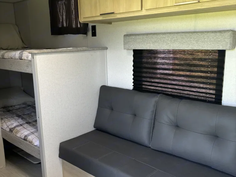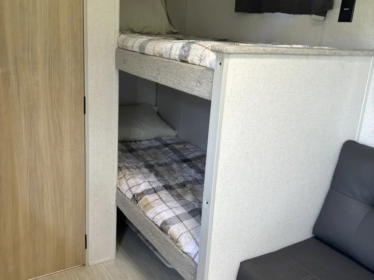 Say hello to Buckie — the perfect little getaway wagon for those who love big adventures! With bunk beds and a comfy main bed, everyone has a place to crash after a day of hiking, roasting marshmallows, or chasing fireflies. The kitchen is just right for pancake breakfasts or late-night s’mores prep, and the whole space is great after a day outdoors. Easy to tow, easy to love — it’s your family’s favorite memories just waiting to happen!What's included• Bedding and Pillows for all beds