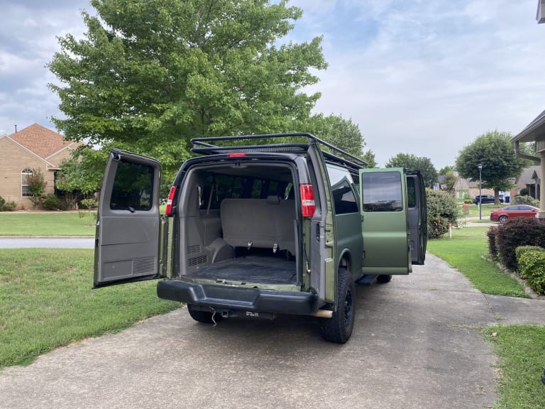 Are you about to head out on a family adventure, watch your kid sit the bench at an out of town soccer tournament or take your in-laws deep into the woods for a...fun camping trip? Well you will have more than enough room in the Mean Green Machine. Shoot, you can even bring the kitchen sink with you!This 15-passenger van will hold the entire team or if you want some seats taken out you can fit coolers, tackling dummies, etc in this huge thing. Or we can take out all of the seats and you can throw some air mattresses in the back!Don't rent this van if you don't want people coming up to you at gas stations to ask about it or people to give you a thumbs up while passing by on the interstate. We pack kayaks, chairs, tents and all sorts of stuff on the herculean roof rack attached on the top.We have tons of memories in this baby as we regularly take it to 3v3 soccer tournaments, out of town baseball weekends, and camping trips throughout our beautiful state parks. Our favorite trip so far has been a trip to Gulf Shores with my wife riding shotgun, mother-in-law with a row all to herself, 8 year old son with a row all to himself, 11 year old daughter with a row all to her self and 13 year old son in the very back. We even forgot we brought him he was so far back there! Hope you enjoy this family adventure van and create tons of memories!Please feel free to reach out to us if you have any more questions. Thank you and see you soon!Other things to noteThe roof rack is an absolute beast but we have found that several 300 lb men on it at one time will push it to the limit. So please only use to carry your supplies and not to set up your lawnchairs and party.