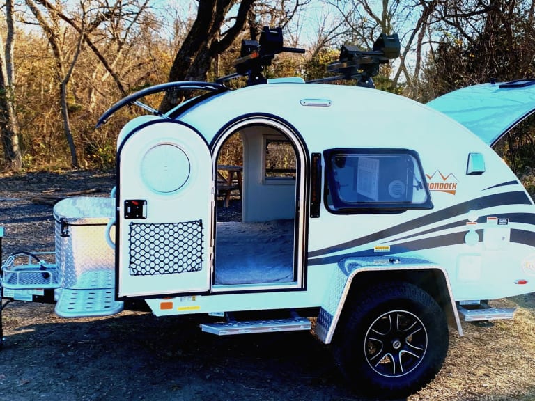 Meet Mack, the teardrop trailer from Turtle Outdoors.This 2021 trailer is easy to tow and hookup.Enables you to setup your campsite in less than 5 minutes.The comfortable interior features a king size bed, A/C, heat, ceiling van, and indoor/outdoor speakers.The outdoor galley kitchen comes equipped with sink, 2 burner stove, microwave, Yeti cooler, and work lighting.These extras are included: Kuerig coffee maker with coffee & hot cocoa, Percolator coffee maker, 2 mugs, and 2 outdoor wine glasses.If you want a more remote adventure, the trailer has oversized off-road tires, battery and solar panels to “boondock” camp.Take Mack with you on your next camping trip to spend less time setting up and more time enjoying the great outdoors.What's includedComes equipped with Keurig coffee maker (with coffee and hot cocoa pods)
