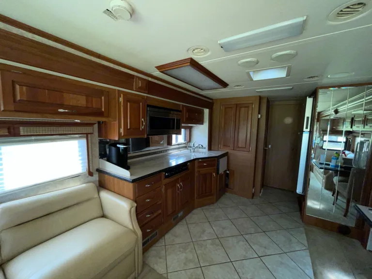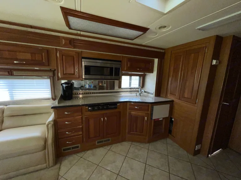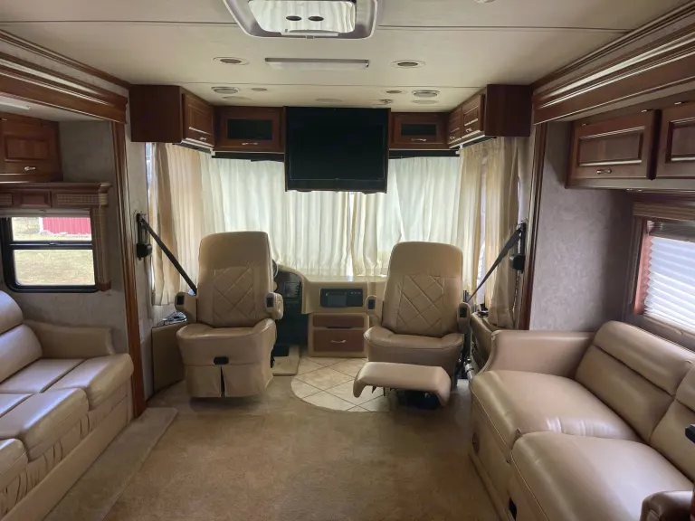 This rig is jam packed with everything you need! In the livng area, there is one couch, and one love seat. The couch folds into a full size bed. There is a TV/DVD player provided that can be viewed from the couches. The love seat collapses, and is equivalent to twin size bed. There is a fully equiped kitchen- fridge/freezer, stove top, microwave convection oven, and plenty of pantry storage. Pots, pans, untinsels, and silverware provided. Along with basic cooking spices, coffee pods, a Kuerig coffee maker, toaster, griddle, and waffle maker. There is a guest bathroom, with a toilet and vanity, in the front of the RV. Back to the bedroom, there is a queen size bed, plenty of storage space for clothing and personal belongings. A flat screen tv and DVD player are available in the room also. In the master bathroom there is a full size shower with a glass door, toilet, and sink/vanity, washer dryer combo, as well as even more storage space in the closet.What's includedFresh linens for all bedding/pillows
