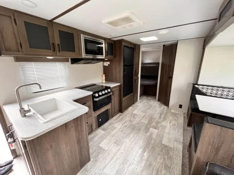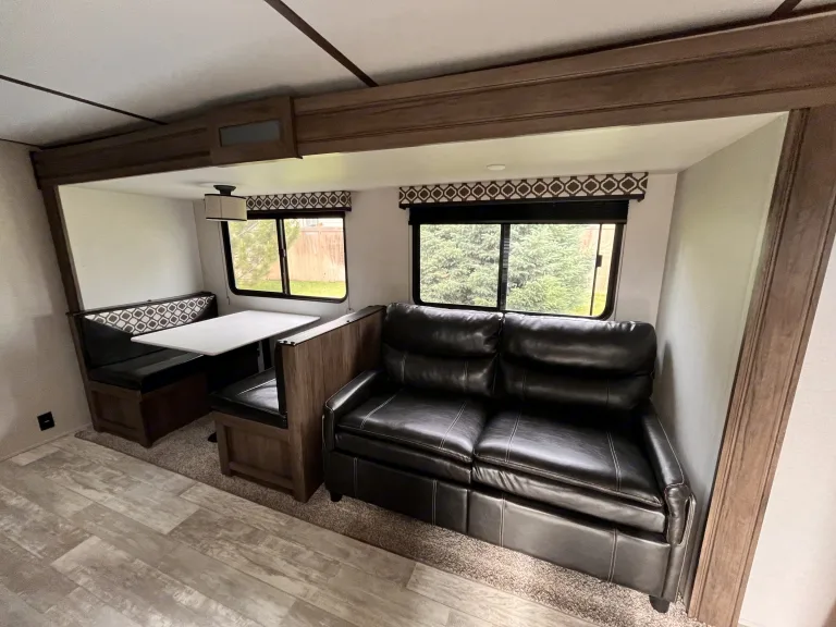 This is an ideal family camper offering ample living space and sleeping accommodations. This trailer has plenty of amenities, including a microwave, refrigerator, tv stand, outdoor shower, 19' awning, outdoor and indoor speakers, oven, full bath, and more. It has two built-in propane tanks and a slide on the left side of the trailer. The trailer sleeps 8 people, with 5 beds and 1 full bathroom. It's spacious and has lots of storage space. We always enjoy taking it camping, boondocking, and to Rv resorts. No matter where you go, this trailer promises an enjoyable and memorable experience for all.What's includedFresh linens and utensils. RecommendationsMcCall RV Resort, Scott Street, McCall, IDOther things to notePets welcome!