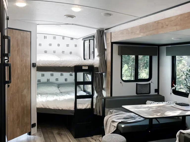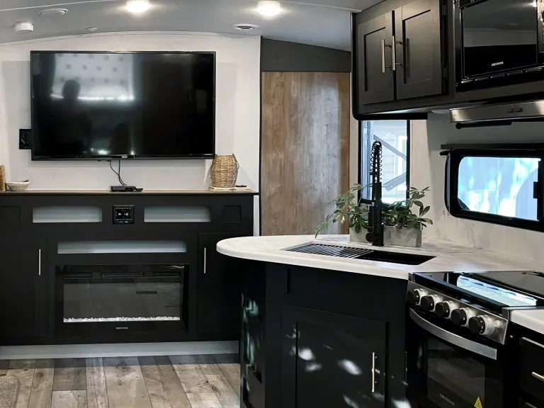 The Modern Mtn Escape is a Brand New 2022 Keystone Springdale Travel Trailer located in Meridian, Idaho. The interior is so upscale, you will forget you are camping. Featuring a new, queen-size memory foam mattress in the master bedroom, 2 full-size bunk beds with the coziest comforters known to man, a convertible dinette, and a pull-out couch. Cozy up next to the electric fireplace OR throw in a movie for the kids in the living room and watch your own movie in the master.Enjoy heat, AC, fridge, freezer, oven, stove top, indoor and outdoor shower, fireplace, 2 TVs, 2 DVD players, an assortment of kid (and more mature) DVDs, extra storage, Keurig coffee maker, many USB charging ports throughout the trailer, a huge electric awning with LED lightning, and a pantry stocked with paper towels, toilet paper, and towels. We provide roasting sticks so you can make the perfect S'more.This camper really is a dream and will be perfect for your ultimate getaway!What's includedSolar, 2 lithium batteries, 2 propane tanks, sway bars to make hawling it a breeze, electric stabilizers, a 9x12 outdoor rug, a folding camp table. Electric tongue jack. 3 Camp chairs.Available upon request: