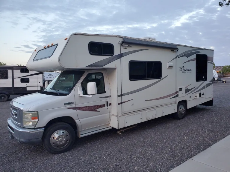 2012 Coachmen Freelander 26 qb. This is a older nicer RV rental that will sleep up to eight people. Easy to operate. Rear private queen bedroom with split bathroom. Front main slide opens up kitchen and Lounge area. Opposing couch and dinette both convert to beds. Front top Queen bed. This has a 6000 lb Towing capacity. Great Value for the price. $150 per night when rented seven or more nights. On board generator with AC and heat furnace. . 20 cents flat per mile