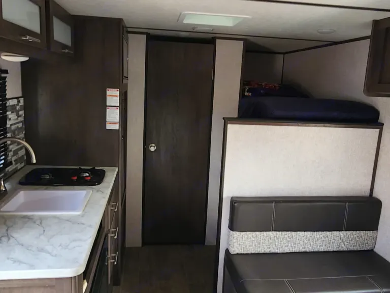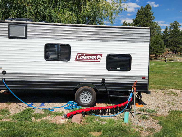 Equipped with essential amenities, this camper features a toilet, small shower, heater, air conditioner, water heater, and an electric awning for added convenience. The upgraded mattresses ensure a comfortable night's sleep, making your outdoor experience truly relaxing.All appliances in the camper are electric, requiring either shore power or a generator (not included) to maximize comfort. Plus, we understand that pets are family too, so feel free to bring your furry friend along – this trailer is dog-friendly!Embark on your journey with the Cozy Coleman Camper, where comfort meets adventure. Book now for a seamless and enjoyable outdoor experience!