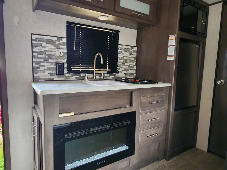 The electric is a 30 amp plug. Simply plug the rig into the shore power at your site for electrical. The water and sewer hook up on the backside of the rig. There is a hose in the bumper for the sewer and a drinking water grade hoes and filter are supplied for the water line