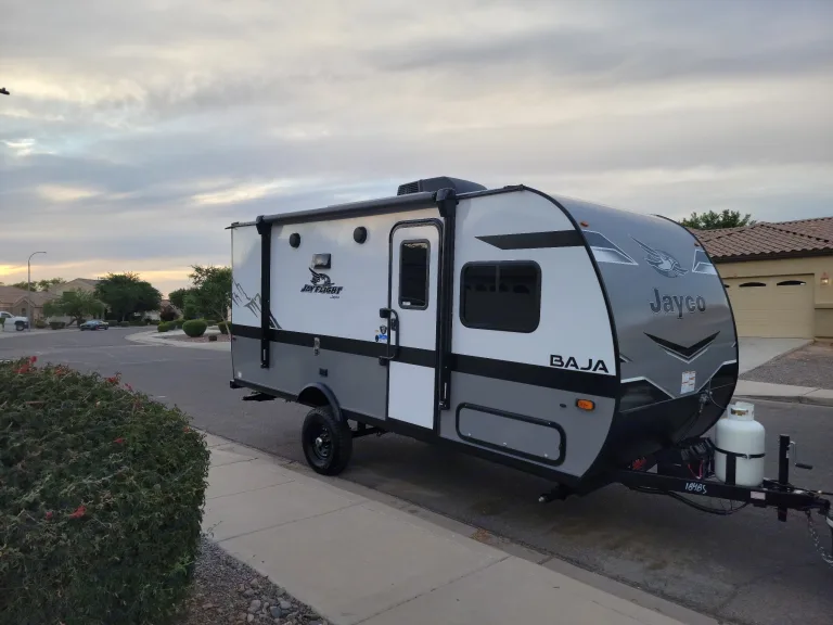 Offroad, no problem! Lifted to get you in the quietest of places. Fully self contained with tanks, generator and solar! Queen bed with bunk beds for the kiddos. Even put the table down for Rex to have a comfy bed. Speakers, microwave, fridge, AC all included along with a generator for boondocking. Trailer is 3400 dry. Easy for small SUV's! What's includedFresh clean sheets just like a hotel would give you. Chairs, table, gas stove for outside cooking or a single burner inside all included. Delivery included in AZ for additional fee. Just ask! Usually under $200. Other things to noteWe ask that you treat this like your own home. Clean up after yourself, treat baja with respect and ensure it can be used correctly next time you decide to rent baja again! Please no smoking inside the baja. Have fun, camp, explore and make memories.