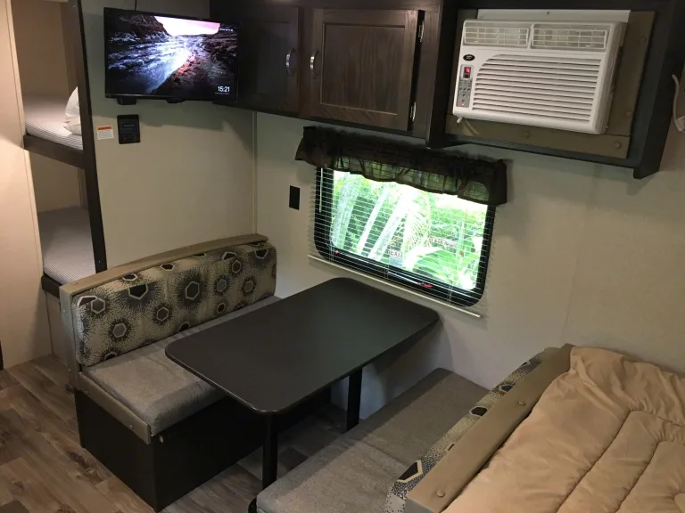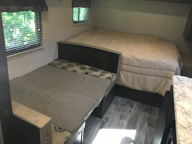 4) twin sized dinette that converts to a bed. (Two can sleep in the dinette if they're not too tall bringing total occupancy to 6 which is phenomenal for a camper this size!)