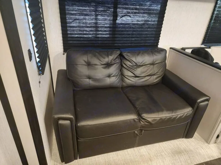 Relax in style as you sink into the plush, leatherette furniture in the well-appointed living area. The large slide-out expands the space, providing ample room for entertaining and creating lasting memories.Restful Retreat: