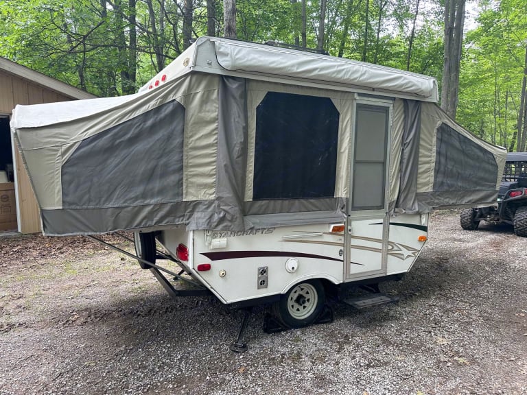 Small pop up for an intimate couples getaway, single adventure or a small family. 2”Ball and 7 round plug! Let us know because we have sparesWhat's included• Pop up has some pots and pans and the essentials to camp.RecommendationsWe love Higgins Lake and Bay City State Park. Otherwise there’s River Ridge camp ground on the river and Northern sites in Beaverton that are nice family Owned campgrounds!