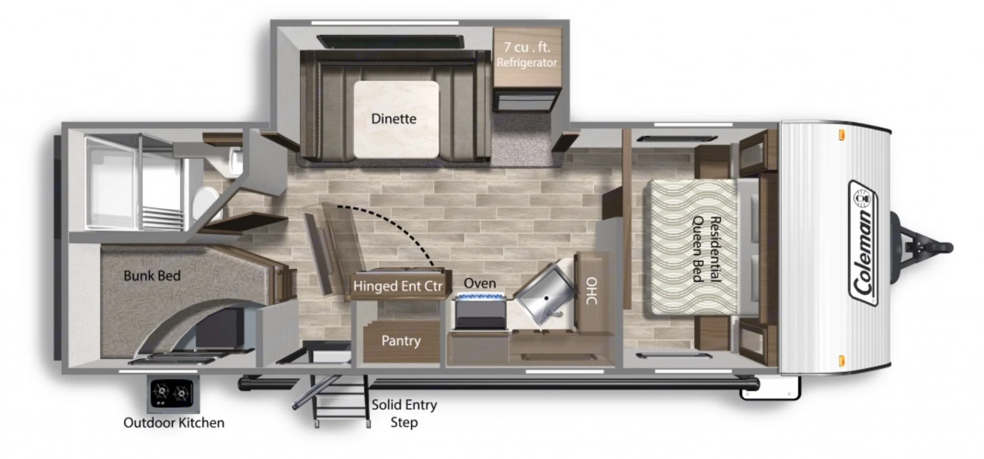 Outdoor portable propane grill, grilling utensils, 2 rocker camp chairs, 2 reclining lounge chairs, 2 tables that convert into corn hole and ladder ball games, bean bags, Frisbee.RecommendationsLucy likes to go anyplace you do. She is always up for a cross country adventure on the road. She loves camping at the lake, beach and theme parks. She is great at events such as sporting events, races, festivals and meets. State and national parks are her favorites, but any good RV park is fun. She can even park at your house for extra guests that you might have. Heck, she can park at ours if you like, if you have come to town for business and would like a more private place to stay.Other things to noteLucy is not to be taken off of paved roads without pre-approval. We want to take tender loving care of her.
