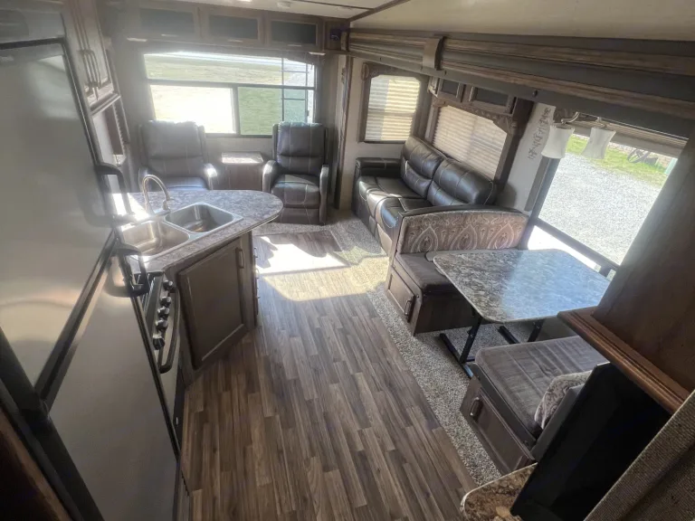 Very spacious fifth wheel big enough to fit the whole family. This trailer is perfect for longer stays wherever you want to go. This trailer includes a spacious shower, separate toilet room, full kitchen, lots of storage, and new queen size bed. Other things to notePin weight of 1200 pounds requires fifth wheel setup in at least a 3/4 ton truck. Will deliver!