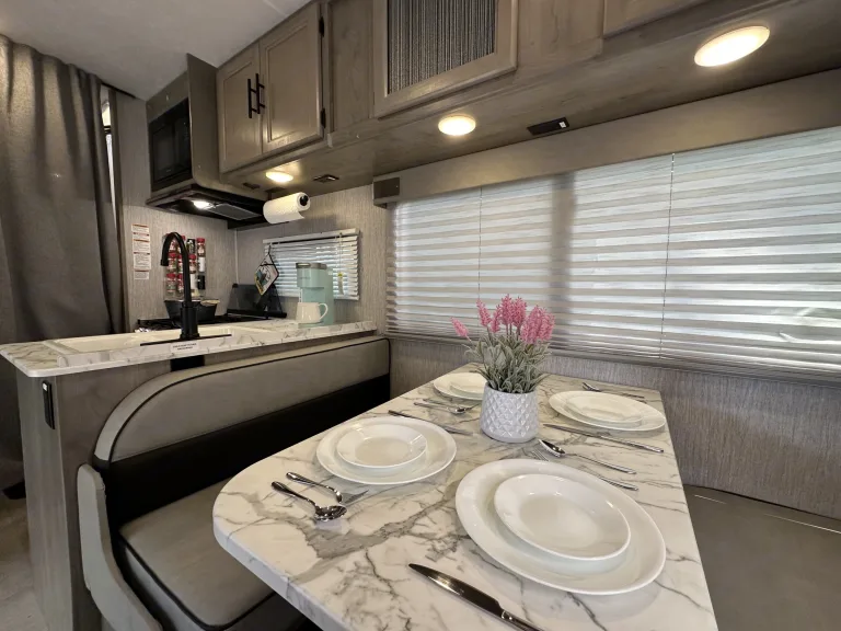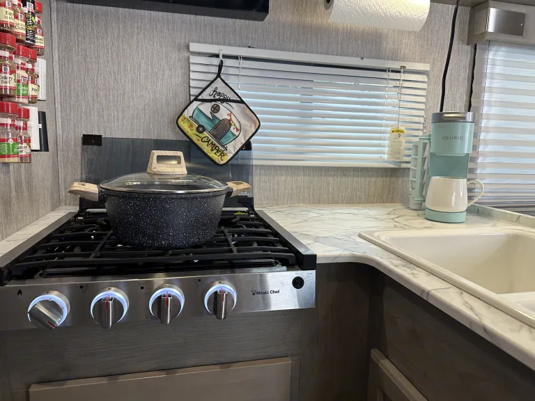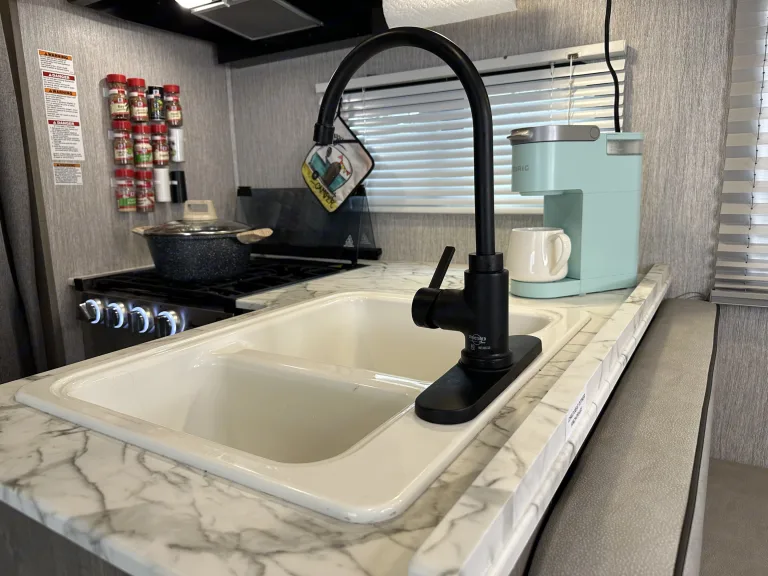 Enjoy modern features like a Keurig, generator, and backup camera for easy travels.