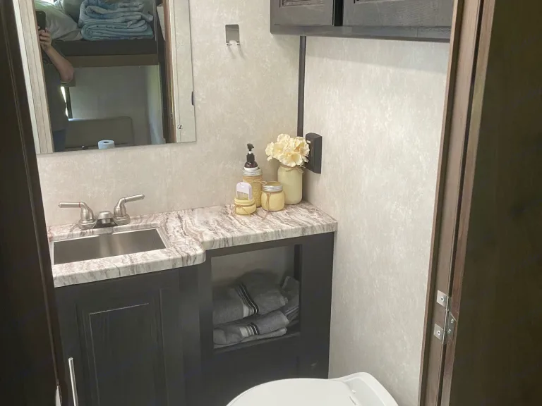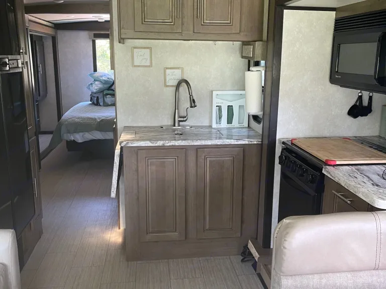 Awesome RV with lots of room! Extra large tanks & boondock capable. Winter Arctic package to enjoy the cold in snowy & scenic locations.My RV’s name is Gladys & she loves parties, cool adventures & pets! She features seatbelts for 8 people & lots of sleeping areas. One king bedroom with locking door. , a set of bunk beds-1 with a twin & one full. Dining table converts to bed and or doggie travel area. Full access to kitchen and bathroom when the two slides are closed. Generator allows you to boondock & remain off grid. Upgraded WiFi extender on roof so you can use your hotspot on your cell service with more bars. Includes a Roku for streaming on the TVs & a cable hookup in the rear compartment if you are camping in a park with cable.What's includedFurnished with fresh linens, antibacterial covered pillows, dishes, pans, serving trays, silverware for four.Propane fire pit, Blackstone griddle, folding tables & just about everything you need for a stress free trip can be included in the add-ins. RecommendationsMany local venues here: concerts at Montage Mountain, Poconos are in the area, Penn State University is just a few hours away for a tailgating experience, Pocono tricky triangle raceway is close by. Beautiful state parks all around us. The RV experience is limitless in the area.Other things to noteNot too many rules for Gladys - just respect her, respect the accessories, and take good care of her. Please do not go on the roof or charges for inspection and any repairs will be added.
