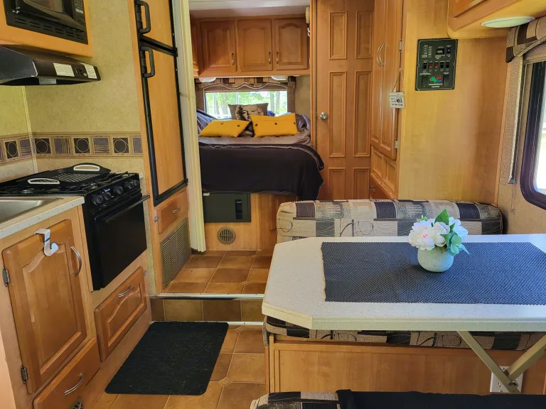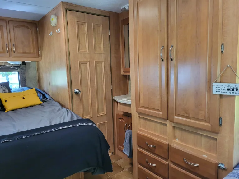 Vous désirez vivre une belle aventure en famille ou avec des amis? Voici le compagnon idéal : « LE Justine »!Ce VR peut loger six personnes et vous est offert tout équipé pour voyager de façon autonome et dans le plus grand confort puisqu’il vient avec une batterie, une génératrice, l’air climatisé, le chauffage, du propane, un ensemble de couverts, un frigidaire et bien plus encore!