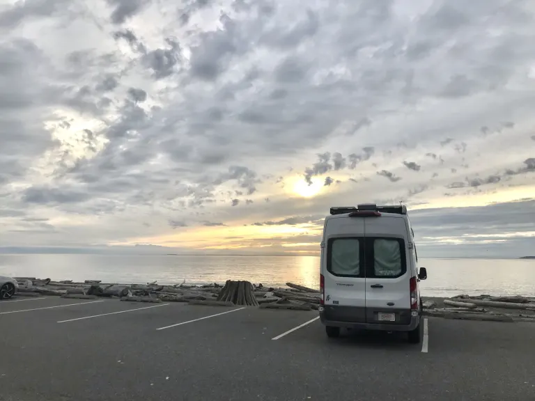 Meet Wilfred - your vacation home on wheels! Like a big 'ol snail, Wilf carries the amenities of home in her beautiful shell. This high roof Transit has been custom-built with love, for ease of adventure and comfort on the road. With a high roof and queen size bed, Wilfred is a very comfortable stay for folks up to 6'4"! Created for off-grid adventures, 300 watts of solar fuels the power station - keeping the fridge and ceiling fan going and your devices charged. The kitchen has a great prep area, with an ample counter, storage space and beautiful, deep kitchen sink (off-grid, foot-pump operated and easy to use!). An extra-large awning keeps rain or sun at bay, providing 60+ sq ft of extra covered space outside.Wilfred doesn't disappoint with storage space either: a full truck bed of storage under the bed, ample fridge and freezer space, and lots of other shelves and bench seats for dry goods, clothes, shoes, and whatever else you want to bring! Part of Wilfred's beauty is in the details: modern, clean aesthetic with a little bit of nature and whimsy. Wilfred is insulated with Havelock wool and has custom privacy curtains on all windows- you'll sleep like a baby in this space! What's included*Upgrades to the interior of the van in progress, new photos coming late April!*- Queen size bed with linen, light and warm comforters, pillows