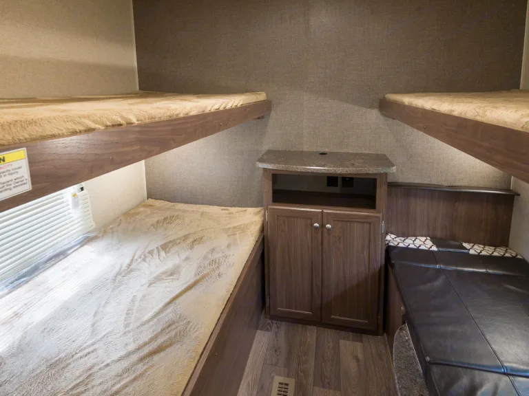 Great family camper! This travel trailer is ready for some adventure. We have owned this beautiful family friendly trailer for 3 years, and just don't have the time to enjoy it all summer long. It's in great condition, and well kept.Perfect for a week or weekend away with the family! Sleeps 6-8 comfortably, can sleep up to 10. Separate bunkhouse in the back with a dining table conversion - perfect for the kids to play! Lots of space to spend inside if needed.Electric awning and outdoor speakers create a great outdoor space to cook or sit under.Easy to set up & haul. No delivery available. Pick up just outside of Steinbach MBWhat's includedThis trailer comes fully disinfected after each use.*cookware, pots/pans/bowls etc.
