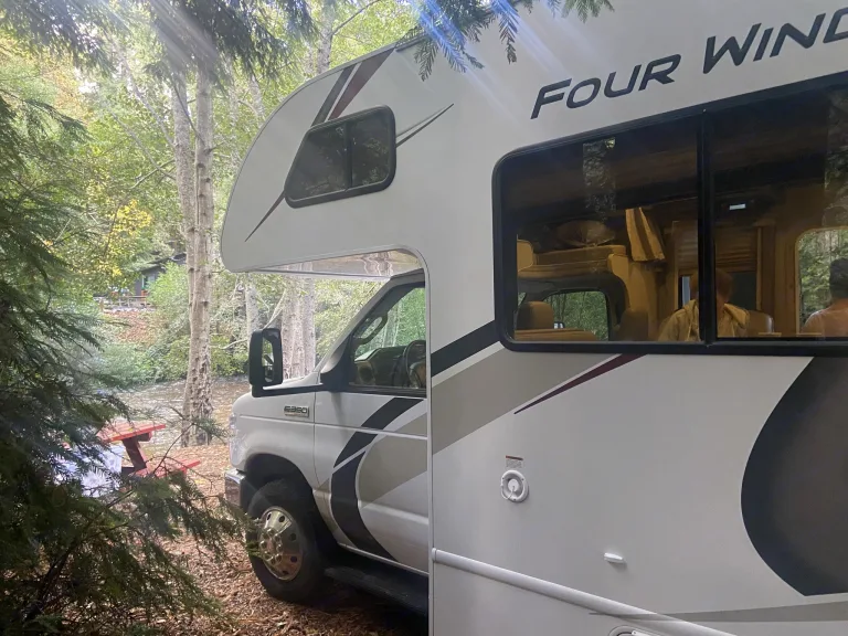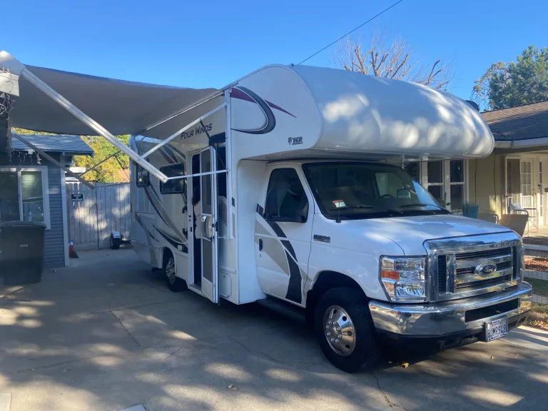 RV is ready for the road. Its fully equipped with a queen sized bed,table foldout,top bunk bed, inside and outside shower, sink, induction oven/stove, microwave, refrigerator, deep kitchen sink, central heating and cooling,32inch tv with cable hookup if your campsite allows it, and with lots of storge for your gear. Car dolly available for front wheel compact vehicles.You can leave one car in my driveway if needed, though not responsible for it.What's included2x camp chairs, camping table, cookware, utensils, DVD and fire stick for streaming, Uno, Jenga, Deck of playing cards, HDMI cable connected to tv, AV connection. (Must click on add-on, if needed) RecommendationsPinecrest. Woodward. Mt. Shasta. YosemiteOther things to notePlease return as it was given.